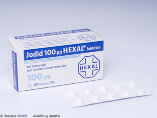 Jodid 100 Tabletten werden zur Vorbeugung eines Jodmangels angewandt. Sie enthalten den Wirkstoff Kaliumiodid. Die Schilddrüse produziert lebenswichtige Hormone, die maßgeblich an der Stoffwechselfunktion des Organismus beteiligt sind. Dazu benötigt sie Jod. Die Aufnahme durch die Nahrung reicht oft nicht aus, es kann zur Bildung eines Kropfes kommen und schließlich zur einer Störung des gesamten Stoffwechsels. Ein erhöhter Bedarf an Jod liegt besonders in der Schwangerschaft vor. Jodid 100 Tabletten helfen bei regelmäßiger Einnahme Jodmangelerscheinungen vorzubeugen und somit die natürliche Funktion der Schilddrüse zu erhalten.